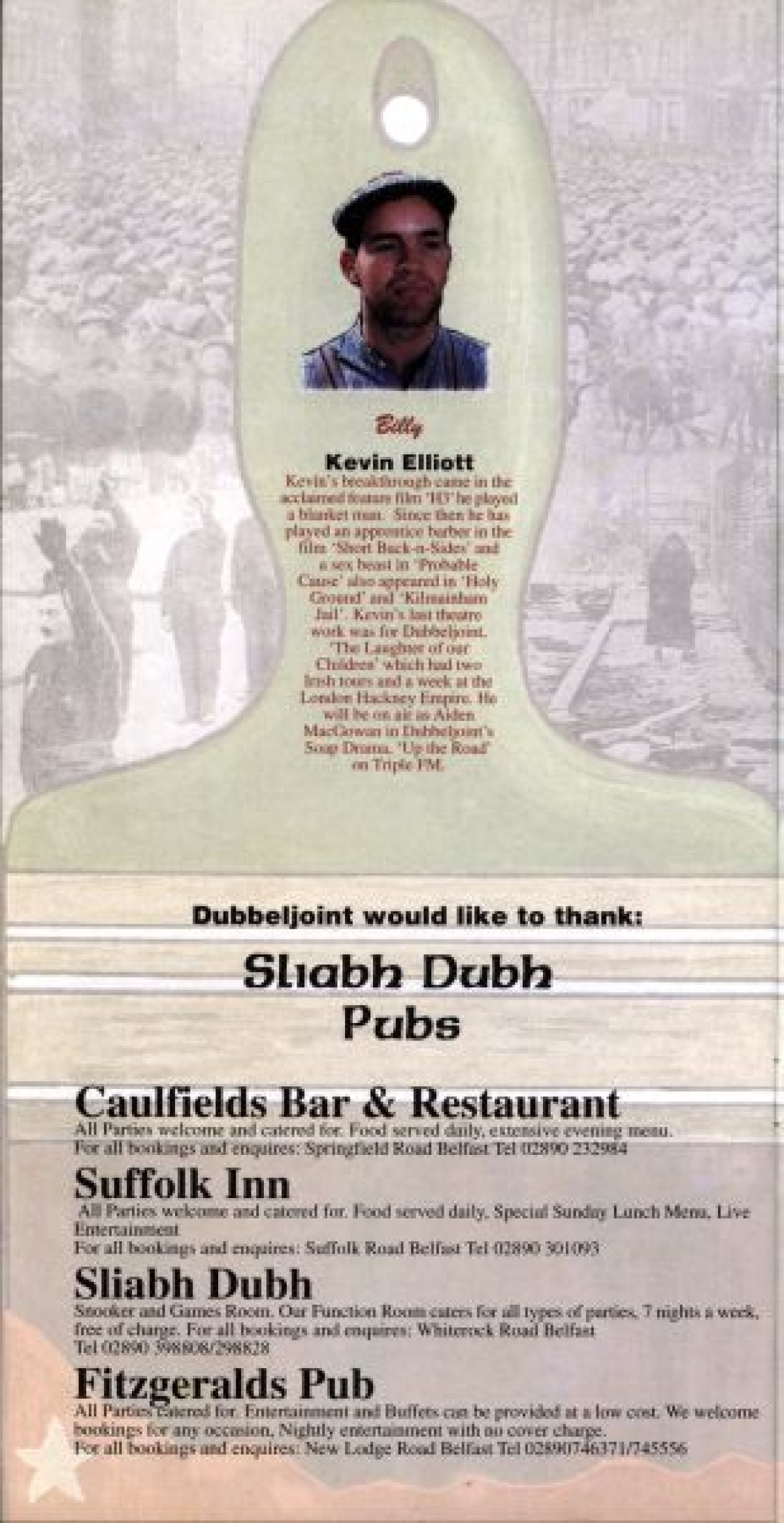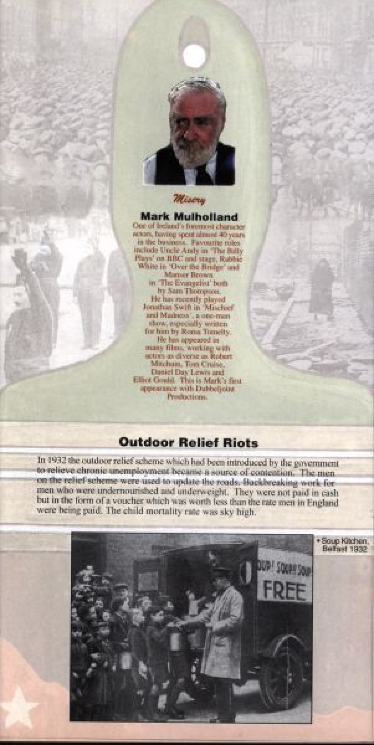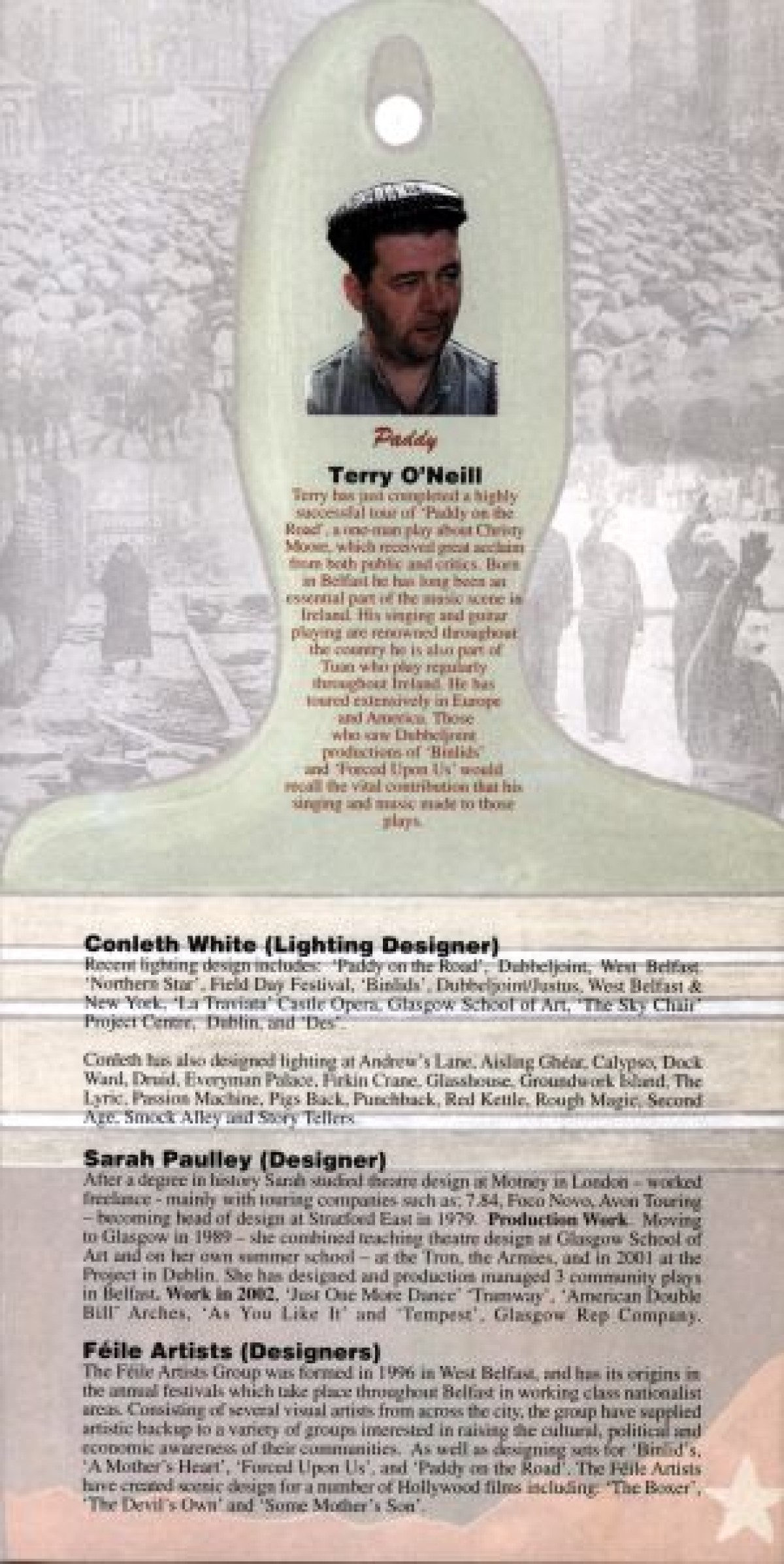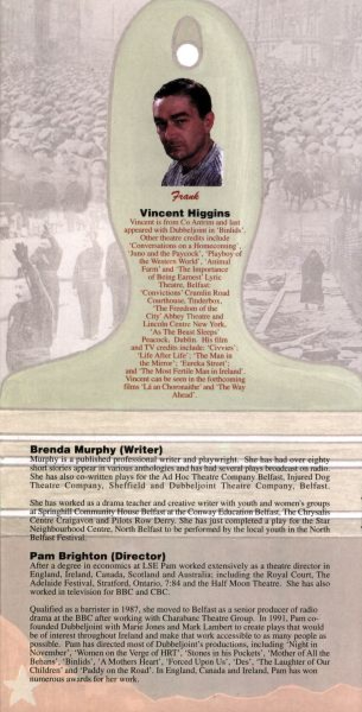 Programme for "Working Class Heroes", a stage adaptation of Robert Tressell's "Ragged Trousered Philanthopists". Written by Brenda Murphy, directed by Pam Brighton for DubbelJoint.